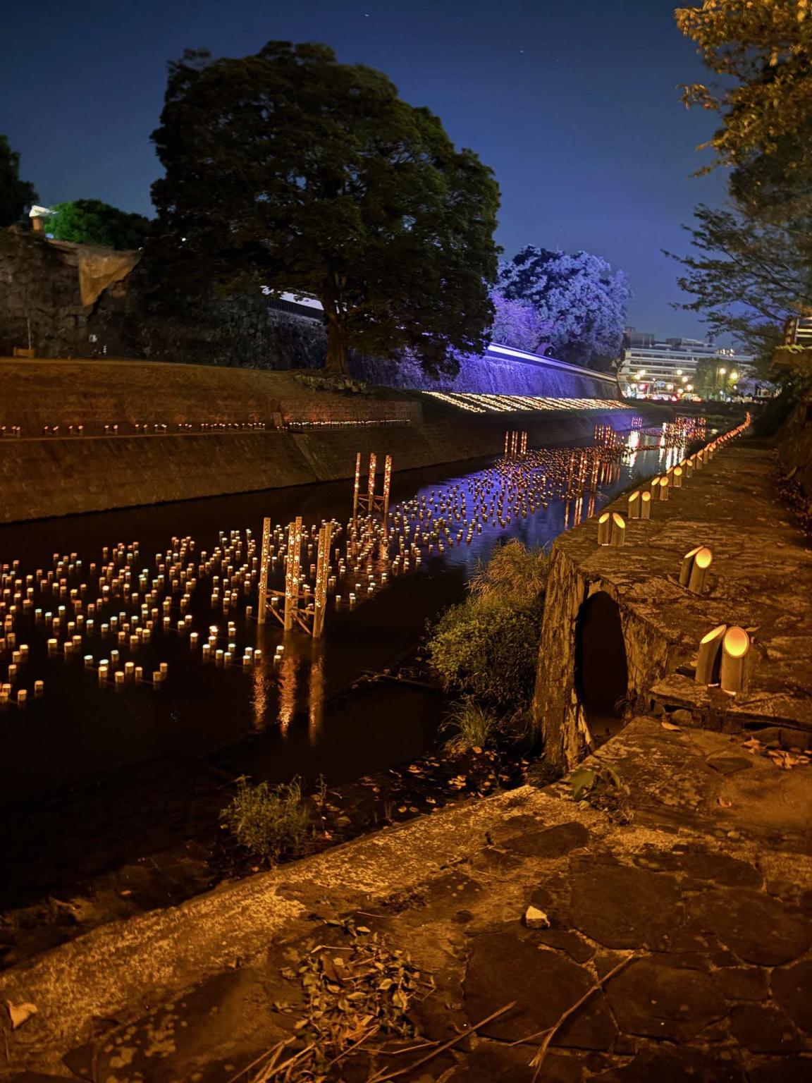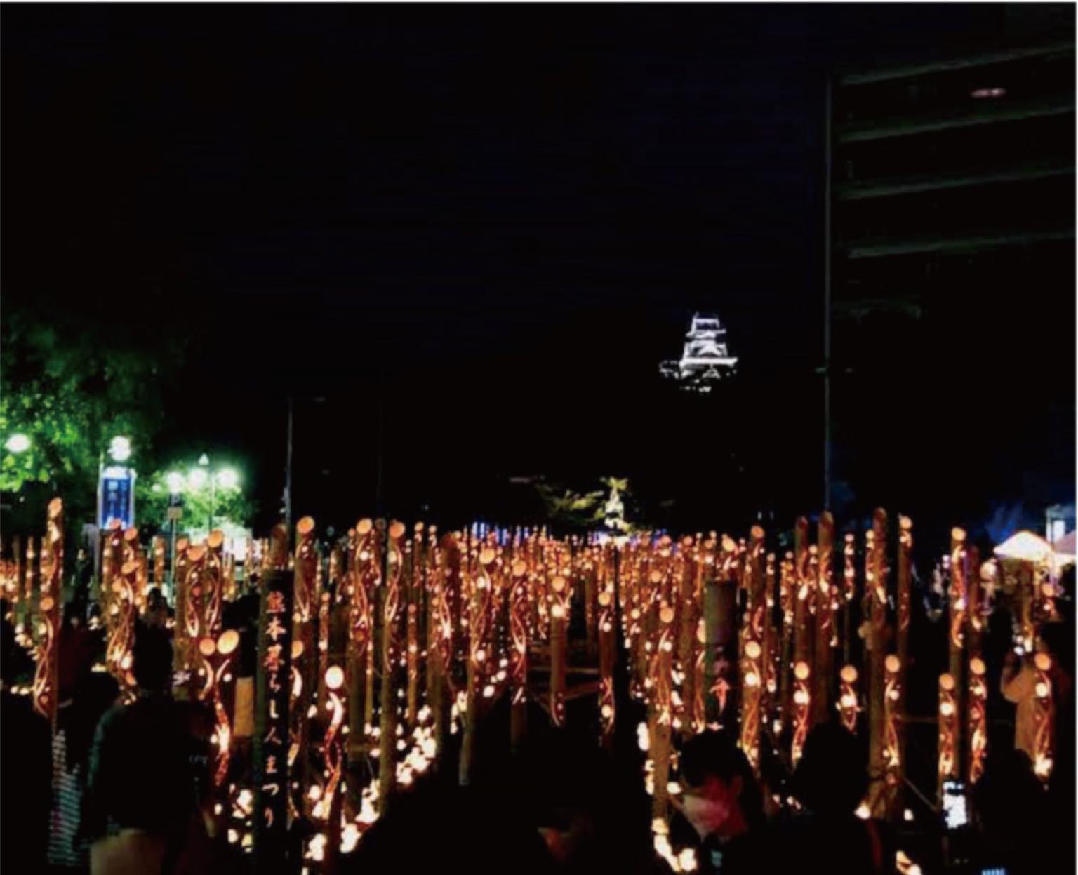 期間:2025年10月11日(土)~2025年10月12日(日)「竹」「火」「水」「ろうそく」といった熊本の資源を生かした灯の祭典。花畑公園、市民会館シアーズ夢ホール前道路、坪井川、熊本城長塀前、城彩苑、清正公像前など一帯が2日間で約5万4千個のろうそくの灯りによって彩られます。