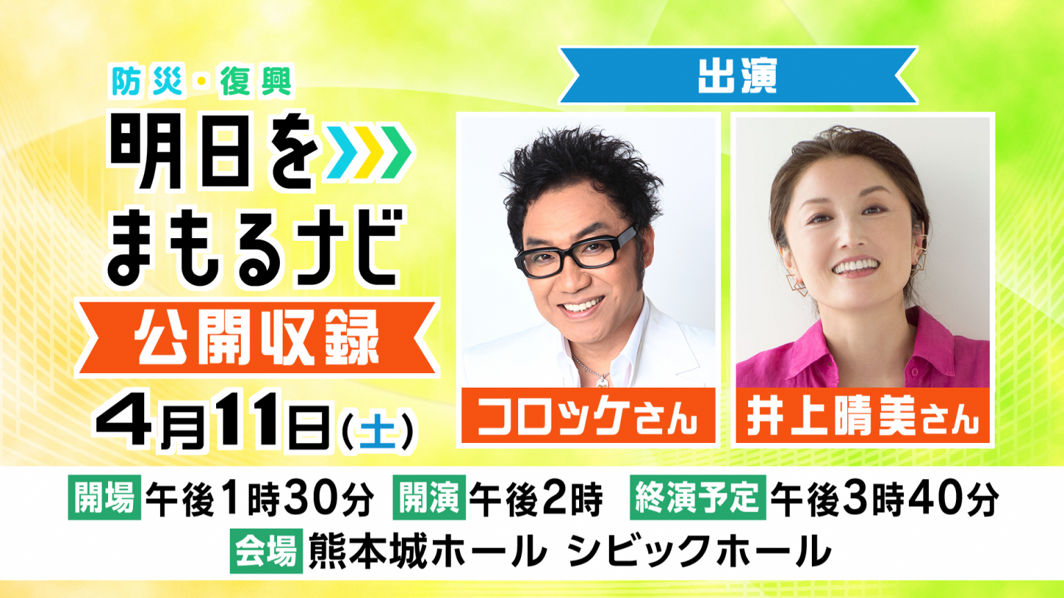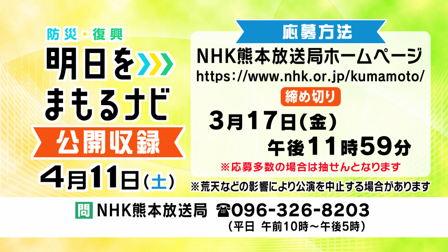 期間:2026年4月11日(土)NHK熊本放送局と熊本市では、「明日をまもるナビ」の公開収録を実施します。