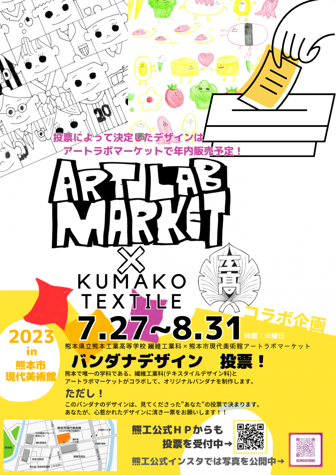 期間:2023年7月31日〜2023年8月31日熊本工業高等学校繊維工業科3年・デザイン班と熊本市現代美術館内にあるART LAB MARKET(ミュージアムショップ)とのコラボ企画!