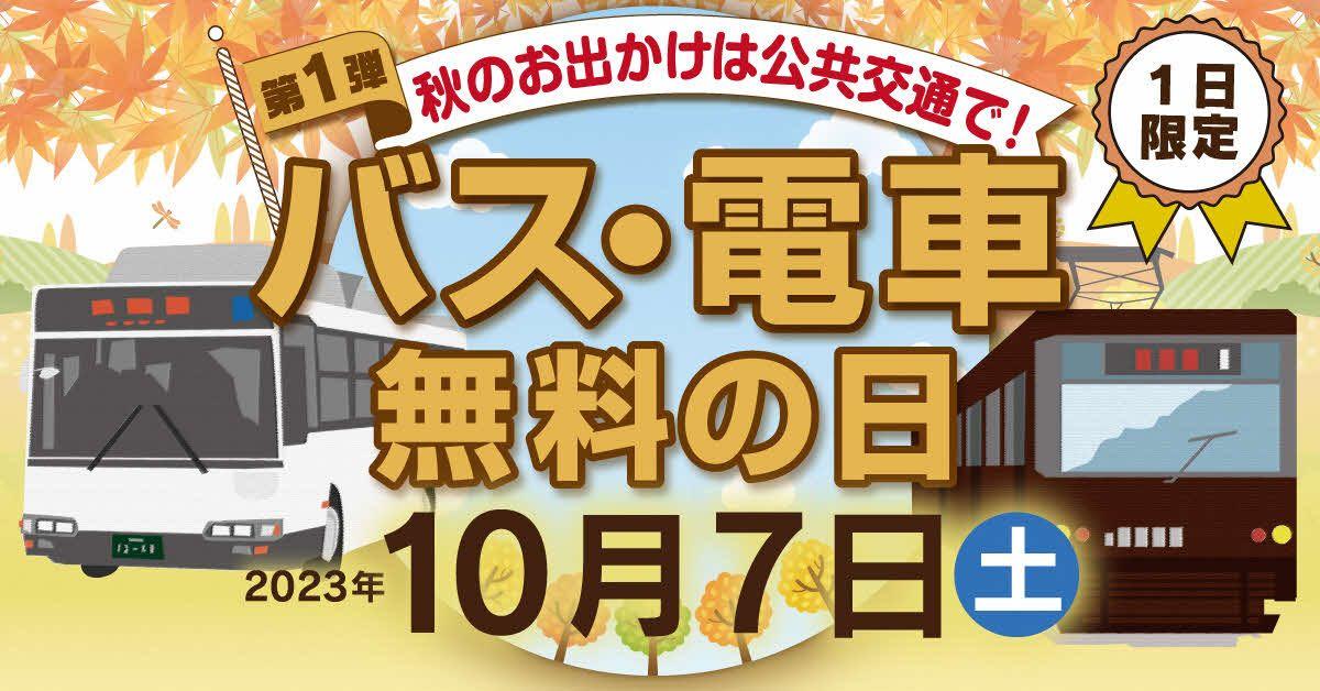 期間:2023年10月7日(土)来る10月7日(土)に、『バス・電車無料の日』を実施します!