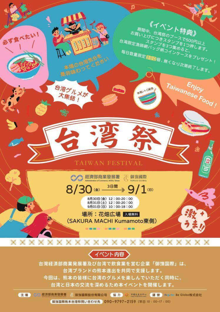 期間:2024年8月30日(金)~9月1日 (日)花畑広場に台湾グルメが大集結!
