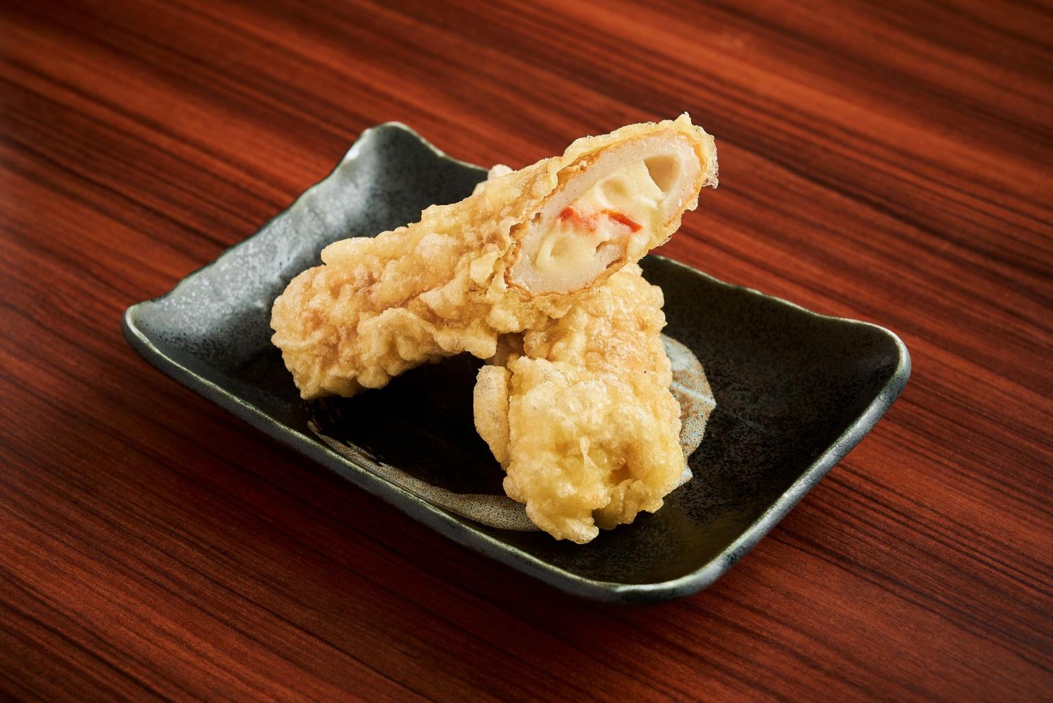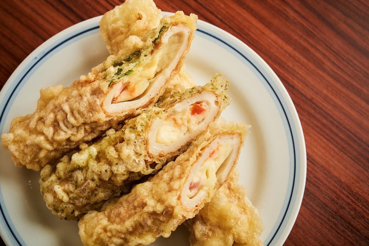 ちくわの穴にポテトサラダをたっぷり詰めて天ぷらにした熊本独特のお惣菜。ちくわもポテトサラダも子どもから大人までみんな大好きで、食卓の人気者だった約30年前に誕生。おいしいものとおいしいものを組み合わせれば、さらにおいしいものが出来上がるだろうという、お惣菜メーカー・ヒライさんの、いたってシンプルな発想からだったようです。以来、お惣菜としてはもちろんのこと、おやつ、つまみとして熊本人に愛され続けています。スーパーの惣菜コーナーや、居酒屋や定食屋でも提供されていて、店によって「ちくわサラダ天」「サラダちくわ天」「ちくわのポテト天」などと名称はさまざま。けっこう食べ応えもあり、小腹が空いた時にはパクリとかじってみましょう。
