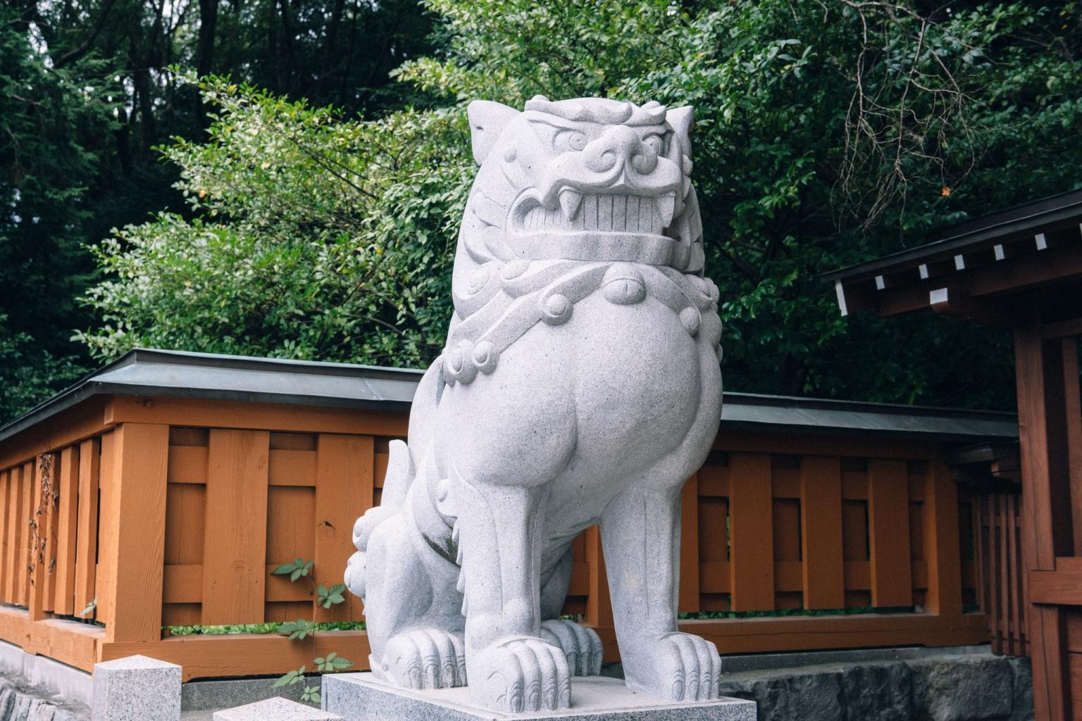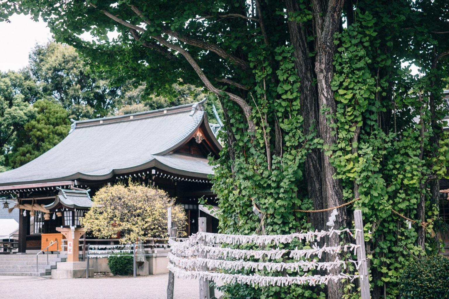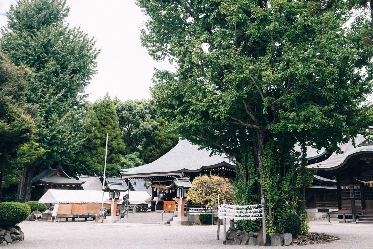 熊本市では最も古い神社で、昔は「たけみや」と言い、のちに「けんぐん」と読まれるようになりました。阿蘇四社のひとつで、電車通りの大鳥居から神社まで続く、八丁馬場(はっちょうばば)と呼ばれる約1200mの長い参道には、加藤清正(かとうきよまさ)の頃植えられたと伝えられる杉並木の一部が残っています。明治10年2月22日、西南戦争で、薩軍を救援するため結成された熊本隊の挙兵の場所です。