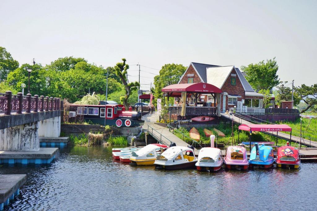 ทะเลสาบเอซุ: ทะเลสาบขนาดใหญ่แห่งนี้ตั้งอยู่ทางทิศตะวันออกของเมืองคุมาโมโตะ ไม่เพียงแต่เป็นจุดพักผ่อนหย่อนใจที่สวยงามเท่านั้น แต่ยังเป็นส่วนสำคัญของโครงสร้างพื้นฐานด้านน้ำของเมืองคุมาโมโตะอีกด้วย น้ำพุที่นี่ สูบน้ำออกวันละ 580,000 ตันเพื่อป้อนน้ำให้กับทะเลสาบขนาดใหญ่แห่งนี้ น้ำพุแห่งนี้เป็นส่วนหนึ่งของกลุ่มน้ำพุซุยเซนจิ-ทะเลสาบเอซุ ซึ่งรวมถึงแหล่งน้ำพุเค็งกุงซึ่งเป็นแหล่งน้ำที่จ่ายน้ำปริมาณถึงหนึ่งในสี่ของเมืองคุมาโมโตะ นักท่องเที่ยวสามารถเดินเล่นและปั่นจักรยานไปตามเส้นทางรอบทะเลสาบ ชมวิวทิวทัศน์อันสดชื่น และสัมผัสขนาดของทรัพยากรน้ำธรรมชาติของคุมาโมโตะ